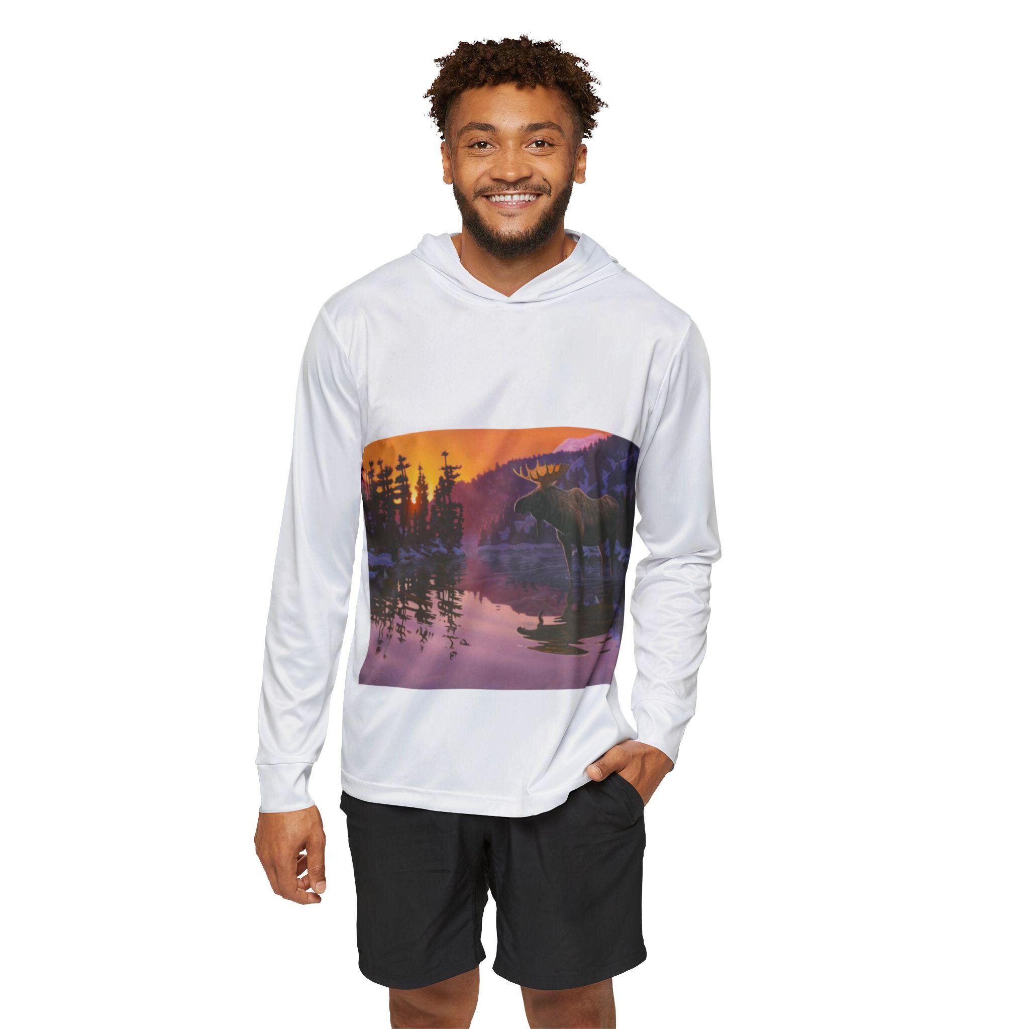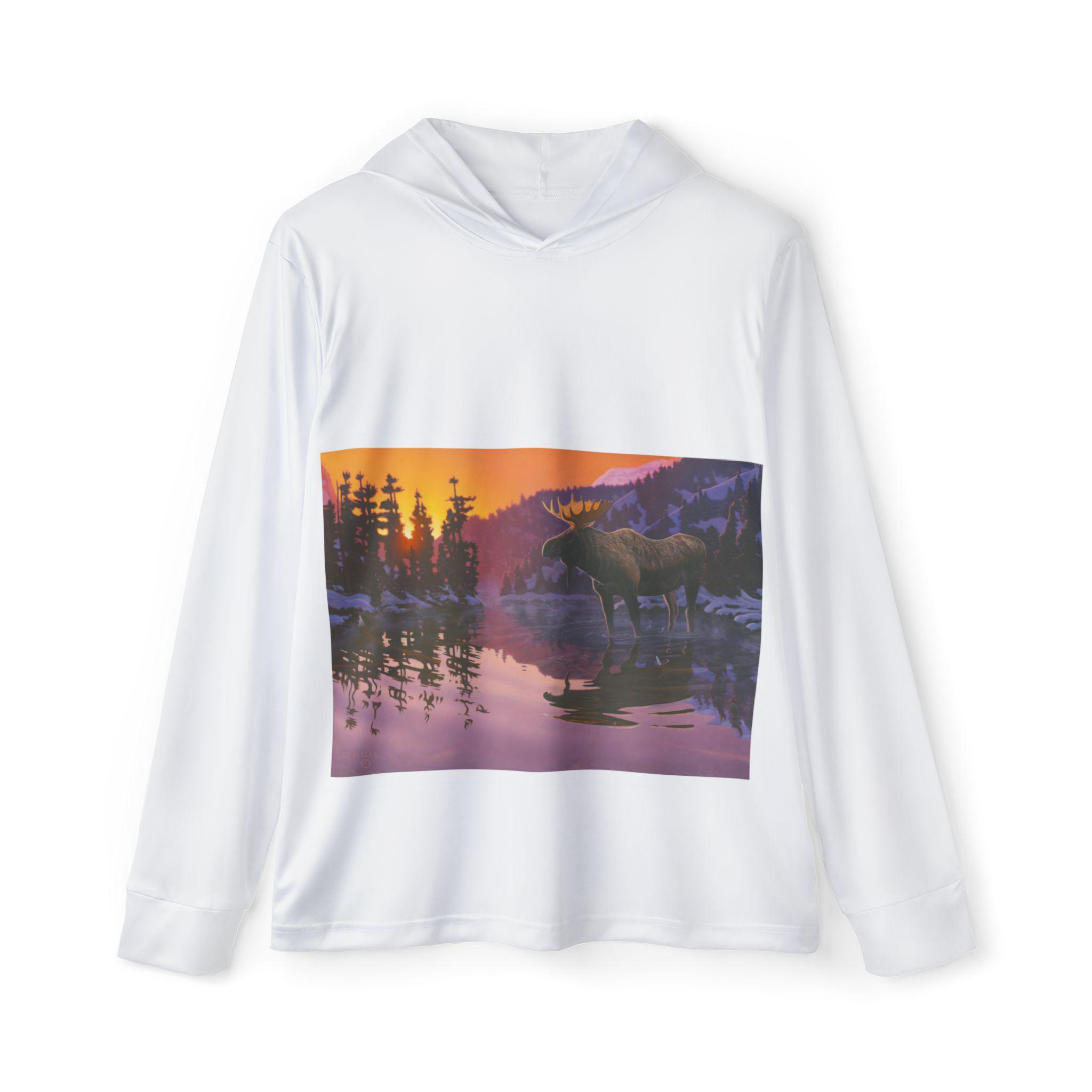 This lightweight sports warmup hoodie brings the hush of a lakeside sunset into your active life. A soft, moisture-wicking polyester keeps you cool during early-morning runs or easy canoe rides, while the serene moose-and-reflection scene grounds the hoodie with quiet, outdoorsy charm. The extra-light fabric and UPF 50+ protection make it a go-to layer for sunny training sessions, trail cooldowns, or relaxed evenings at the cabin. It wears like a second skin, dries fast, and pairs effortlessly with joggers or hiking shorts when you want comfort without the bulk.